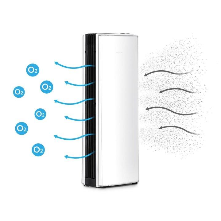 Vďaka kompaktným rozmerom siahajúcim do výšky je vzduchový čistič vhodný na použitie na malých plochách.