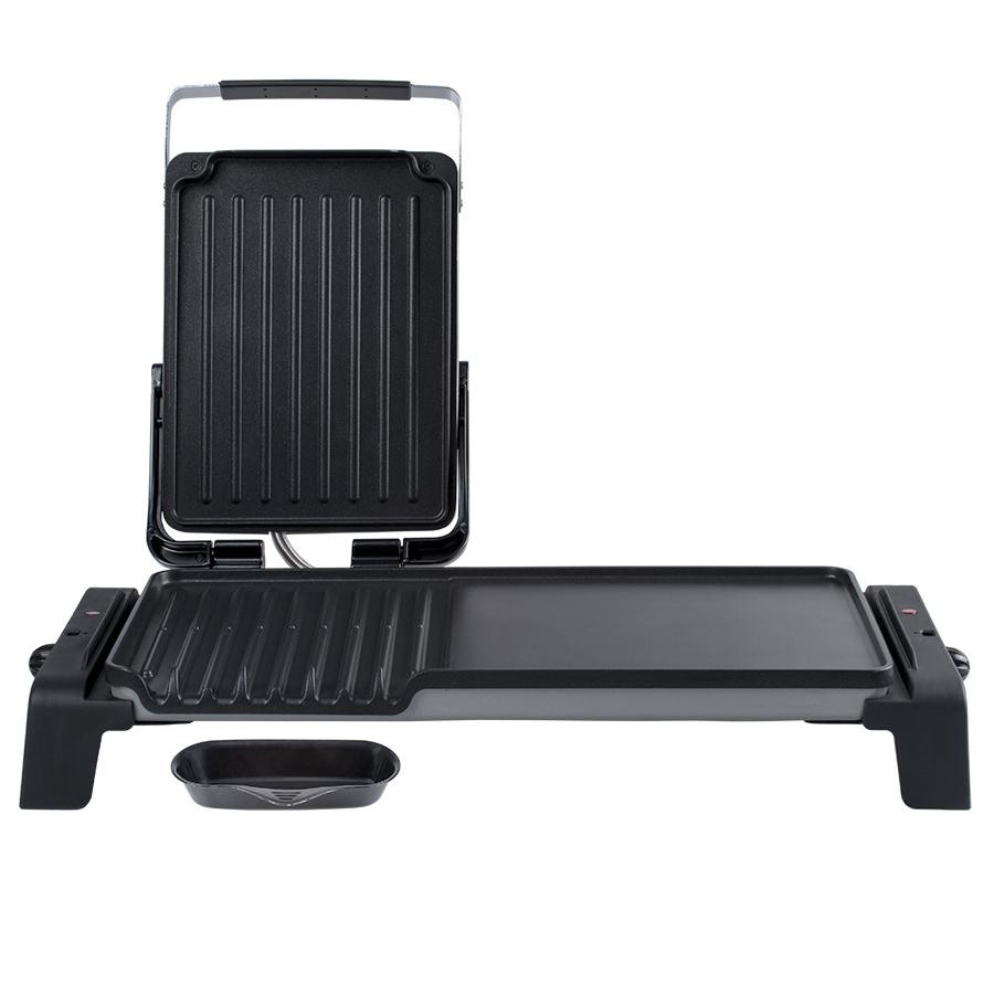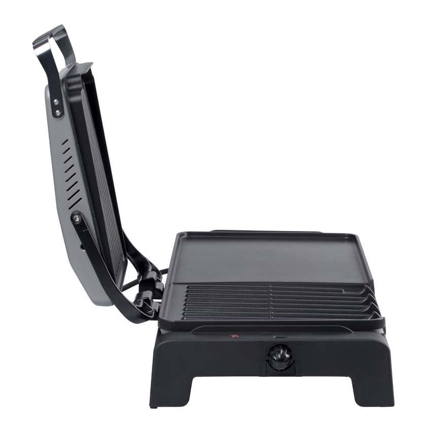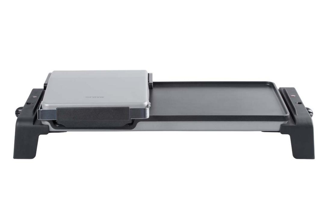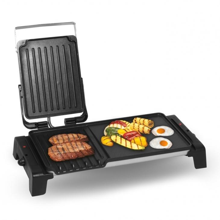Je praktickou kombináciou kontaktného grilu a grilovacej dosky, pričom obe časti fungujú nezávisle a na oboch možno simultánne nastaviť rôznu teplotu grilovania až do 210 0C podľa toho, či práve grilujete pláty cukety, pstruha, alebo potrebujete gril „vypiecť“ na poctivé ugrilovanie jahňacej kotlety.