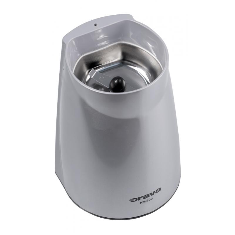 Ak máte doma kávovar bez vstavaného mlynčeka a radi by ste si namleli vždy čerstvú a voňavú kávu, potom je najjednoduchším riešením použiť super praktický a cenovo výhodný mlynček na kávu Orava KM 800, ktorý vám ponúkne rovnomerné namletie kávy v priebehu niekoľkých sekúnd. Tento kvalitný biely mlynček na kávu má nôž z kvalitnej nehrdzavejúcej ocele a výkonný 150 W motor, ktorým dokáže pomlieť zrnká kávy presne podľa vašich predstáv. Mimoriadne účelný mlynček na kávu Orava KM 800 S dokáže obsiahnuť 60 gramov kávových zŕn na jedno mletie (cca 6 šálok kávy), vďaka čomu budete mať svoju kávovú zmes vopred pripravenú aj na ďalšie porcie.