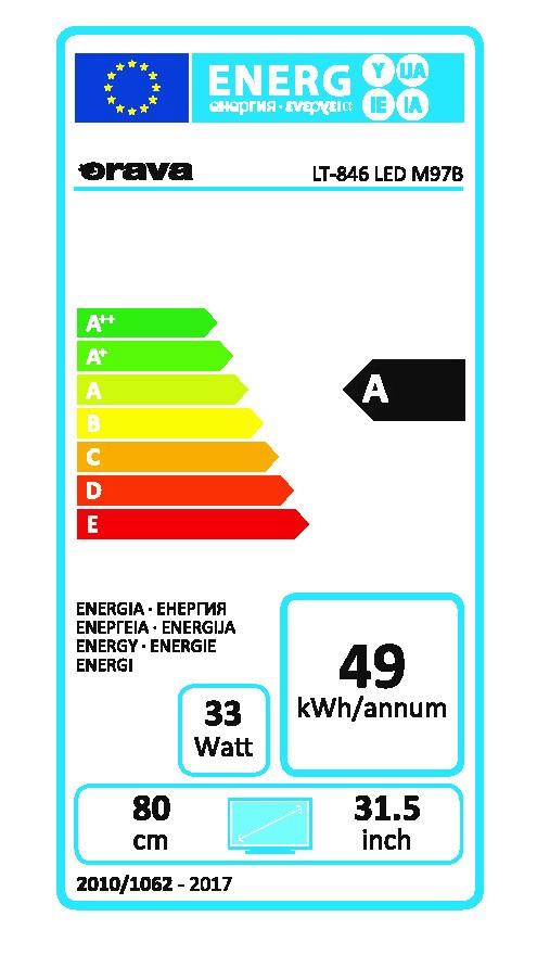 LED televízor, Veľkosť obrazovky: 32"/80cm, Rozlíšenie obrazovky: HD Ready 1366 x 768, Farba: Čierna, Počet USB: 1X, Ročná spotreba energie: 49 kWh, Energetická trieda: A, Rozmery VESA (cm): 10x10