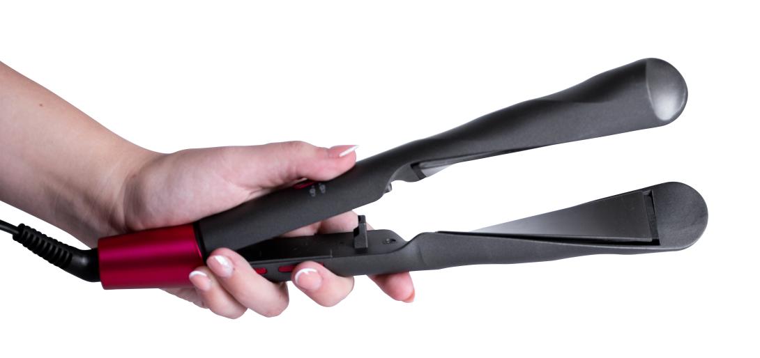 Žehlička na žehlenie vlasov obsahuje keramické doštičky najvyššej kvality pre šikovné vyrovnanie vlasov a ich zatočený tvar vytvorí dokonalé zvlnenie vlasov do kučier.