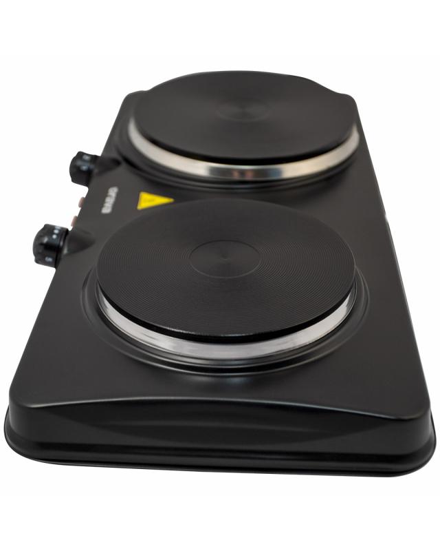 Praktický čierny varič s dvoma platničkami a celkovým príkonom 2 500 W. Platničky s priemerom 185 mm a 155 mm ponúkajú plynulú reguláciu teploty, nechýba tu ani indikátor ohrevu či ochrana proti prehriatiu. Vyniká veľmi jednoduchým ovládaním, ktoré zvládne naozaj každý.