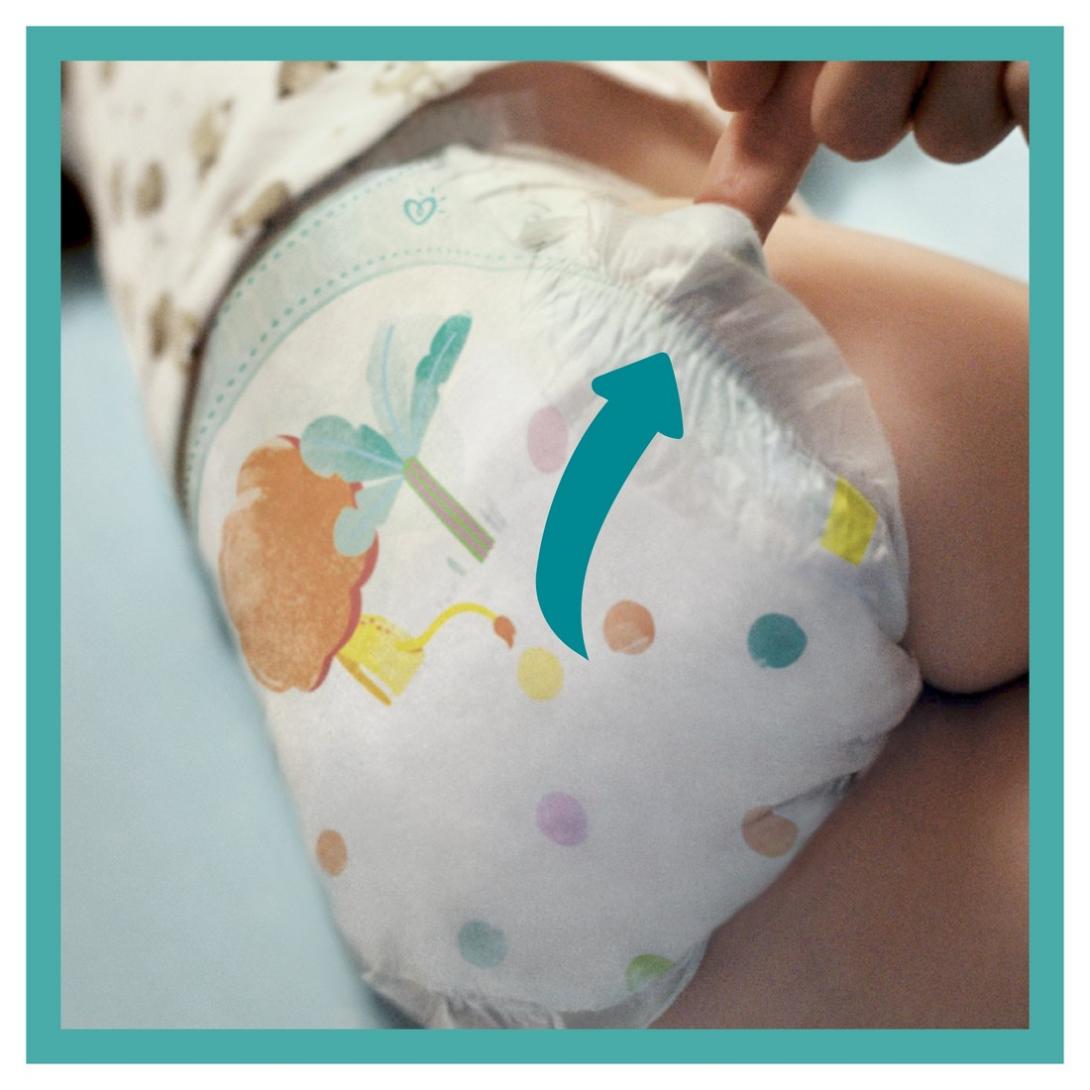 Plienky, Ochrana pred pretečením – systém 3-way protection, Jadro quick dry – pre okmažitou absorpciu tekutiny, 2× pevnejšie manžety – ochrana pred pretečením okolo nožičiek, Bočné krídelká – plne sa prispôsobia pása dieťaťa a pohodlne držia aby obmedzovali pohyb.