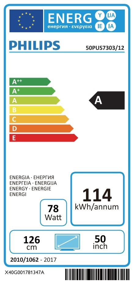 * Spotreba energie v kWh za rok na základe spotreby energie televízora spusteného 4 hodiny denne po dobu 365 dní. Skutočná spotreba energie bude závisieť od spôsobu využívania televízora.