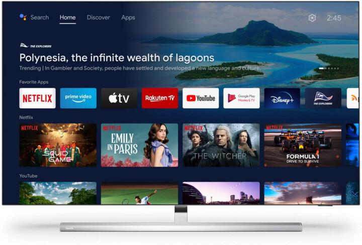- Aplikácie a služby: Amazon Prime, Apple TV, Disney+, HBO Max, Kuki, Lepšie TV, Magio (SK), NETFLIX, O2TV, Skylink Live TV, SledovaniTV.cz, VOYO, YouTube