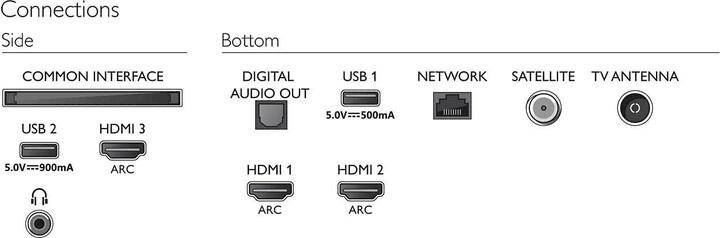 - Funkcia: Ambilight+hue, hudba s funkciou Ambilight, herný režim, funkcia prispôsobenia sa farbám stien, režim Lounge
