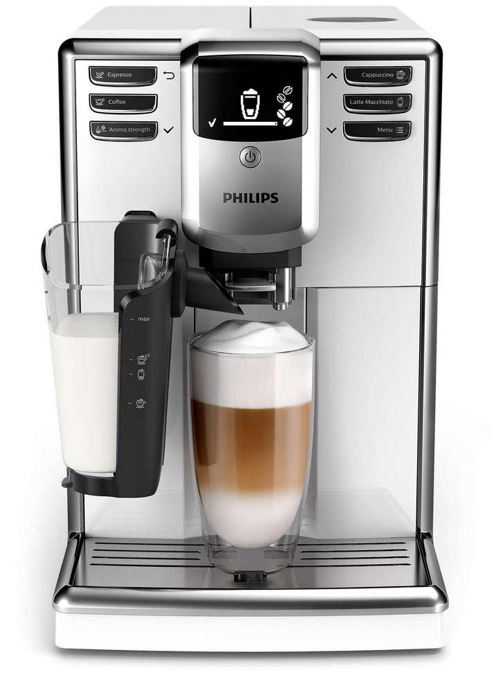 Plnoautomatický kávovar, 6 druhov nápojov Penič mlieka LatteGo, Lesklý biely, AquaClean, Objem karafy na mlieko: 0,26 L, Kapacita nádoby na odpad: 15 porcií