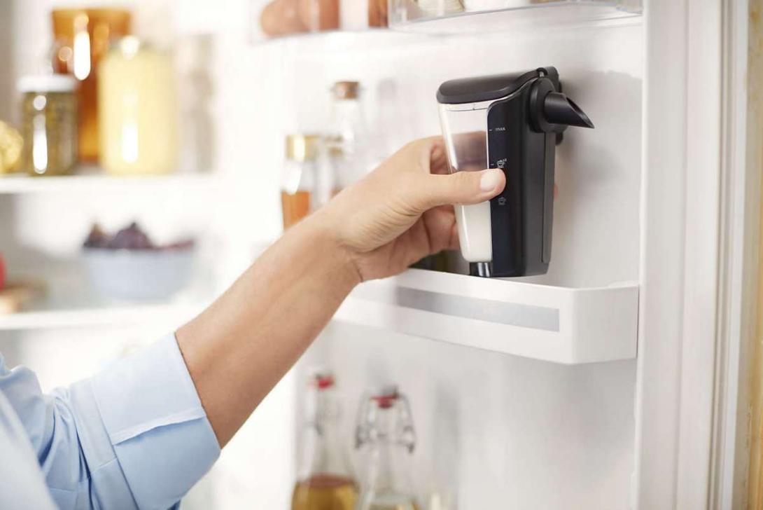 - Veko nádoby peniča LatteGo uchováva mlieko v chladničke čerstvé