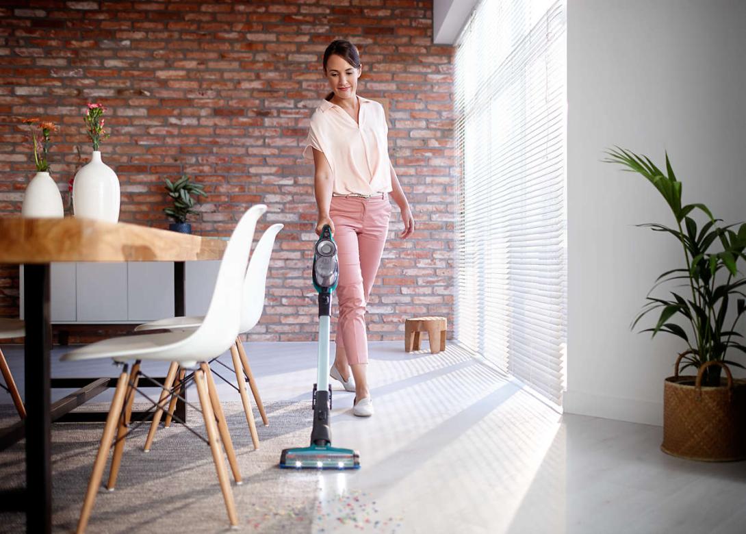 Upracte rýchlejšie vďaka nášmu bezšnúrovému vysávaču 3 v 1. Výkonná 360° sacia hubica zachytáva prach a nečistoty zo všetkých strán. Vysávajte na rôznych povrchoch – od tvrdých podláh až po koberce – s maximálnym využitím každého pohybu. Jedinečný systém vysávača a mopu si naraz poradí s rôznymi druhmi nečistôt.