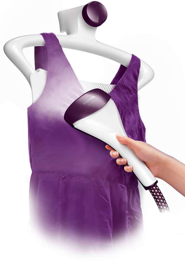 Náš nový naparovač odevov ComfortTouch odstraňuje záhyby a dodáva látkam svieži vzhľad. Vďaka výkonnému kontinuálnemu výstupu pary a mimoriadne dlhej doske StyleBoard okamžite zbavíte odevy záhybov odhora až nadol.