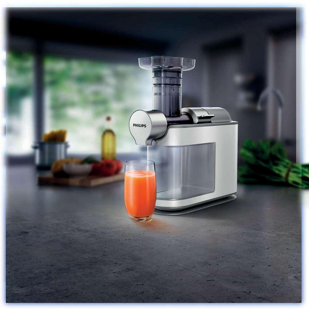 Inovatívna technológia MicroMasticating od spoločnosti Philips je navrhnutá tak, aby otvárala bunky ovocia a zeleniny a extrahovala z nich čo najviac živín. Vďaka veľkej podávacej trubici je doba prípravy teraz ešte kratšia. Po skončení odšťavovania stačí všetky časti opláchnuť dočista.