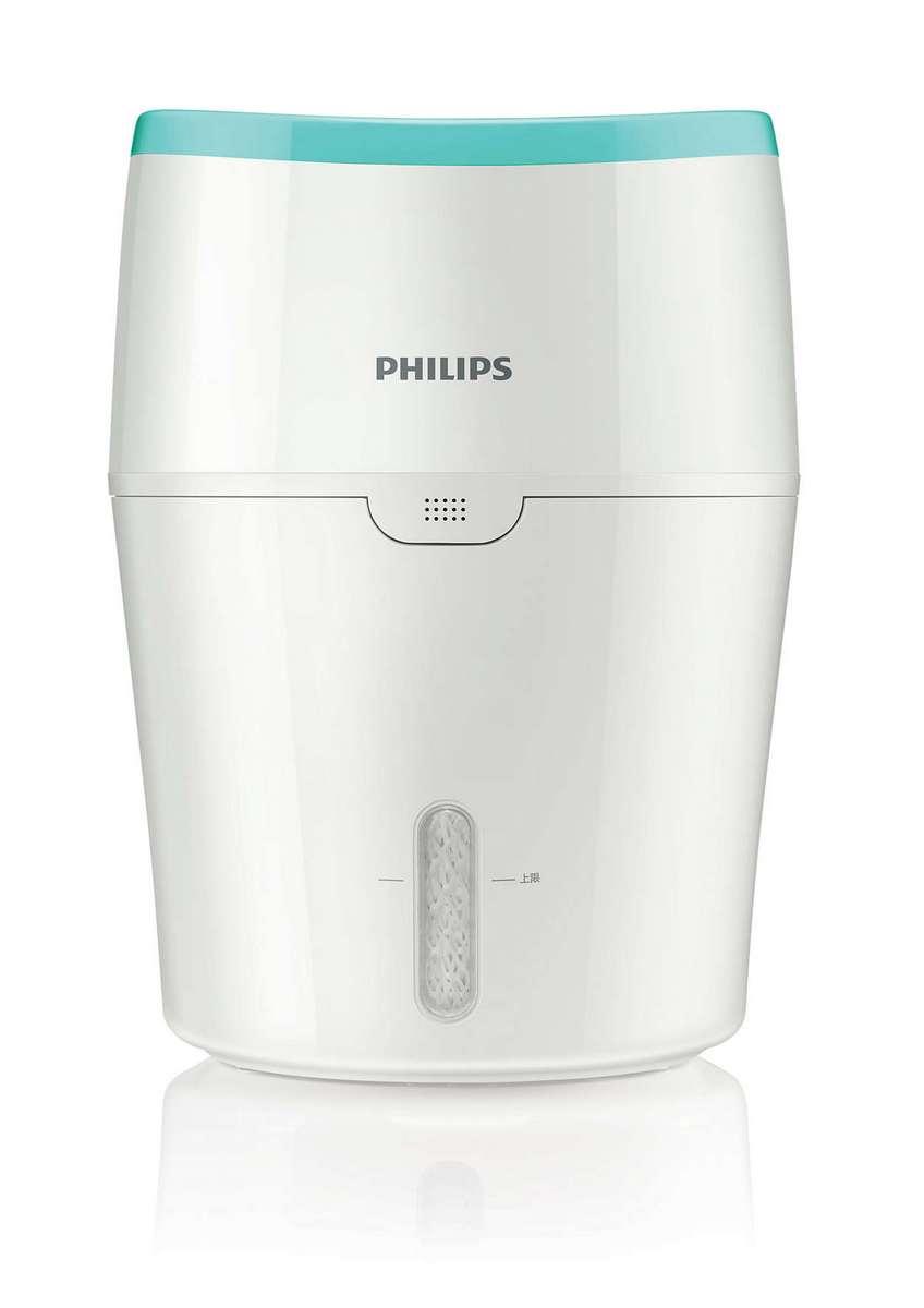 Zvlhčovač vzduchu od spoločnosti Philips bojuje proti suchému vzduchu maximálne efektívne a hygienicky. Zvlhčený vzduch rovnomerne rozháňa po miestnosti a v porovnaní s ultrazvukovými zvlhčovačmi zvuku rozširuje o 99 % menej baktérií. Žiadny biely prach ani vlhké podlahy.