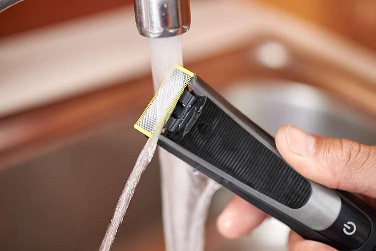 OneBlade je vodotesný, takže sa ľahko čistí: stačí opláchnuť pod tečúcou vodou. Môžete sa holiť bez peny alebo s ňou – ako vám to vyhovuje.