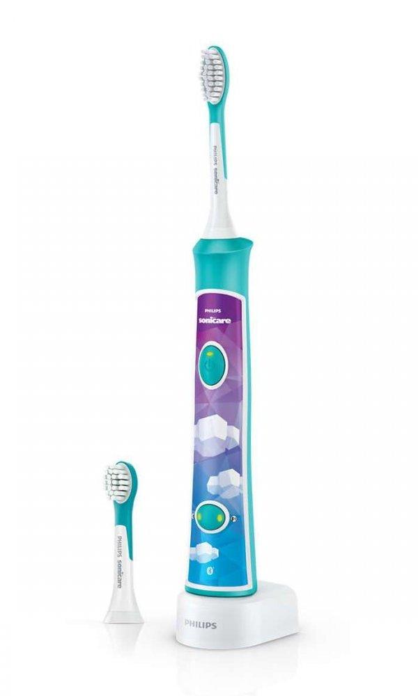 Philips Sonicare for Kids HX6322/04 Sonická elektrická zubná kefka pre deti prepojená s pripojením Bluetooth. Detská sonická kefka Philips Sonicare for Kids s pripojením Bluetooth umožňuje interakciu so zábavnou aplikáciou, vďaka ktorej si deti čistia zuby lepšie a dlhšie. 2 režimy čistenia. Nízka intenzita pre deti od 3 rokov a vyššia pre deti od 7 rokov. Funkcie KidTimer a KidPacer zaisťujú jemné a účinné čistenie. O 75 % efektívnejšia než manuálna detská kefka. Balenie obsahuje: 1 sonická kefka Sonicare for Kids s Bluetooth, 1 detská hlavica Standard (7+), 1 detská hlavica Mini (3+), 1 nabíjačka, 8 samolepiek.