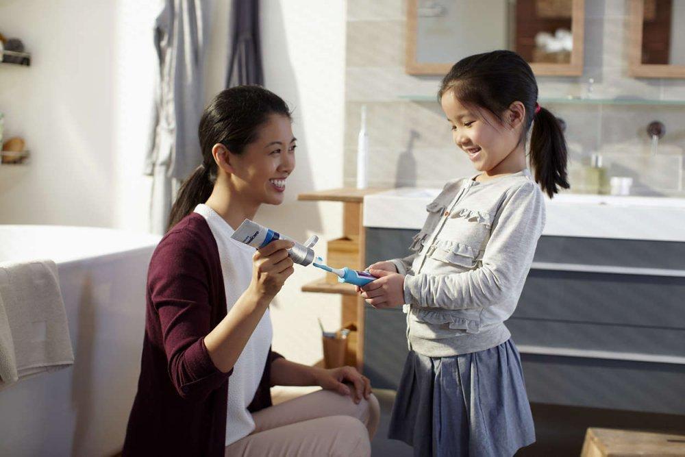 Poskytuje dôkladné čistenie, ochraňuje zdravý úsmev • Dynamické čistenie vháňa tekutinu medzi zuby • Pogumovaný kefkový nástavec slúži na ochranu mladých zúbkov • Sú dostupné 2 veľkosti kefkových nástavcov • Preferované samotnými zubármi pre ich vlastné deti • 2 režimy výkonu šetrné k detským zubom poskytnú jemné a účinné čistenie