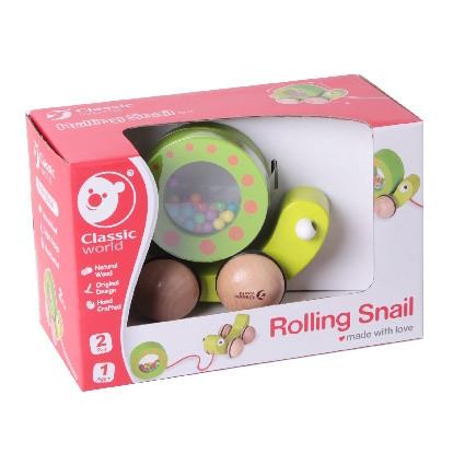 Drevená korytnačka, Vyrazte na cestu so šťastným šnekom! Šnek sa skladá z 2 častí: šnek na kolieskach a slimačie dom naplnený farebnými guličkami.