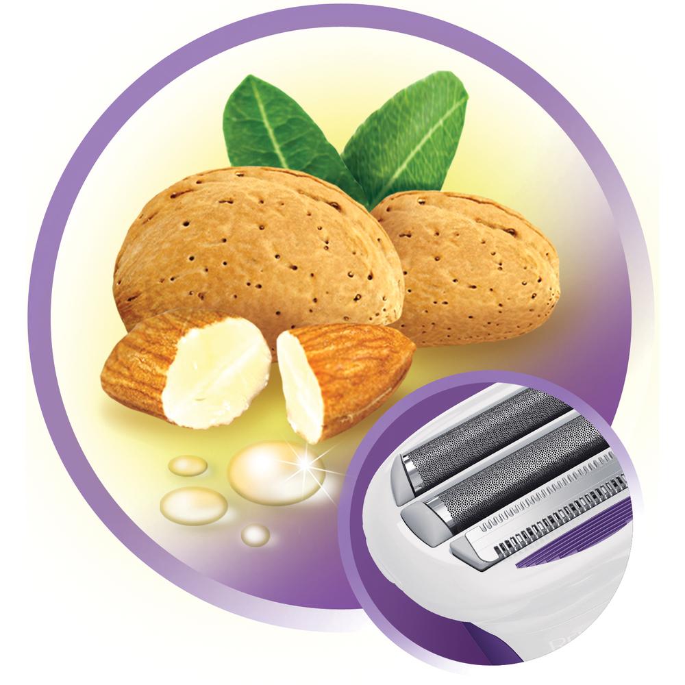 Prúžok napustený madľovým olejom bol špecificky umiestnený pred čepele, aby bola pokožka zjemnená a vyživená a následné odstránenie chĺpkov bolo dokonalejšie ako kedykoľvek predtým.