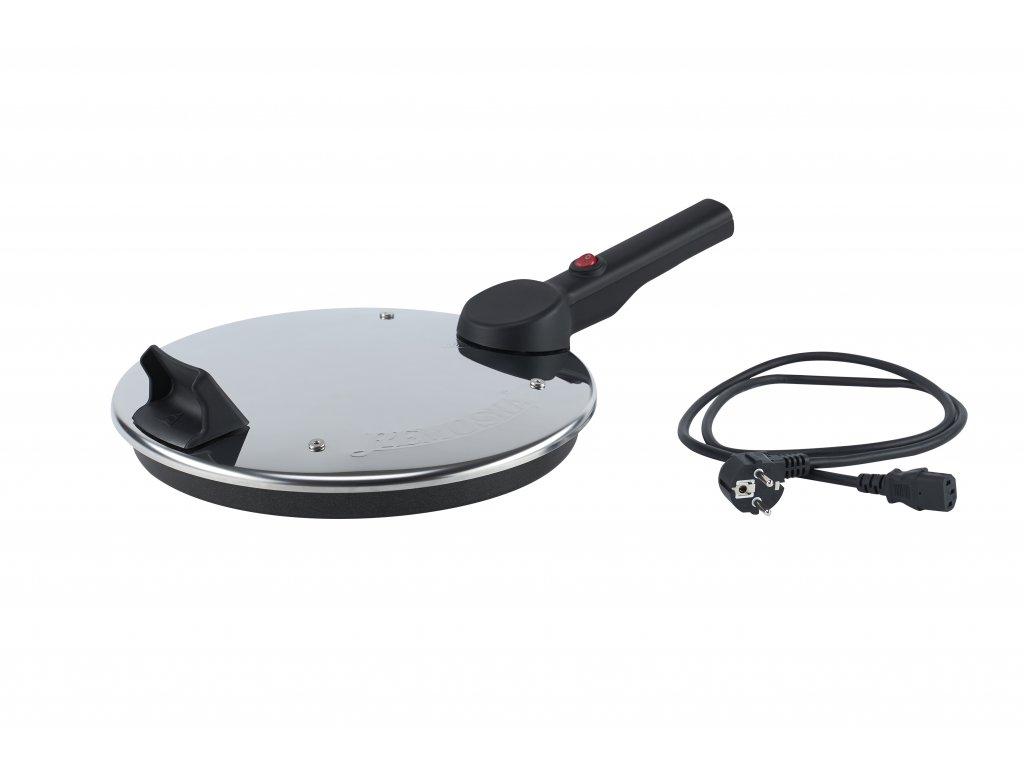 Pokrievka s výhrevným telesom sa skladá z dvoch častí. Spodná výhrevná časť je potiahnutá nepriľnavým povrchom Teflon® Classic a zaisťuje dokonalé upečenie vašeho jedla. Horná časť je potiahnutá antikorovým plechom a je vybavená rúčkou z tepelne upraveného plastu a tým umožňuje odkladanie pokrievky na pracovnú plochu výhrevnou časťou smerom hore. Na rukoväti pokrievky tiež nájdete ovládací spínač misy na pečenie. Pokrievka nemá sklenené okienko.