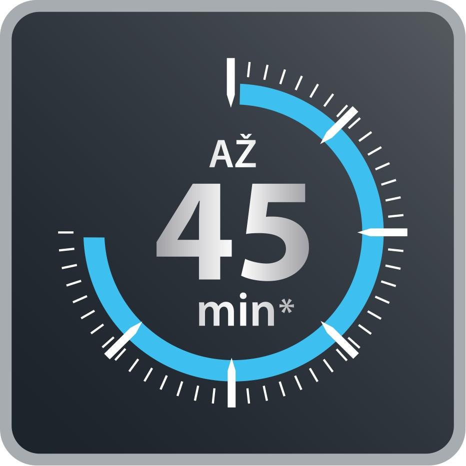 - Vysoká účinnosť aj pri dôkladnom upratovaní: Doba prevádzky až 45 minút je ideálna ako pre zbežné poupratovanie na poslednú chvíľu tak aj pre dlhšie a dokladné upratovanie.