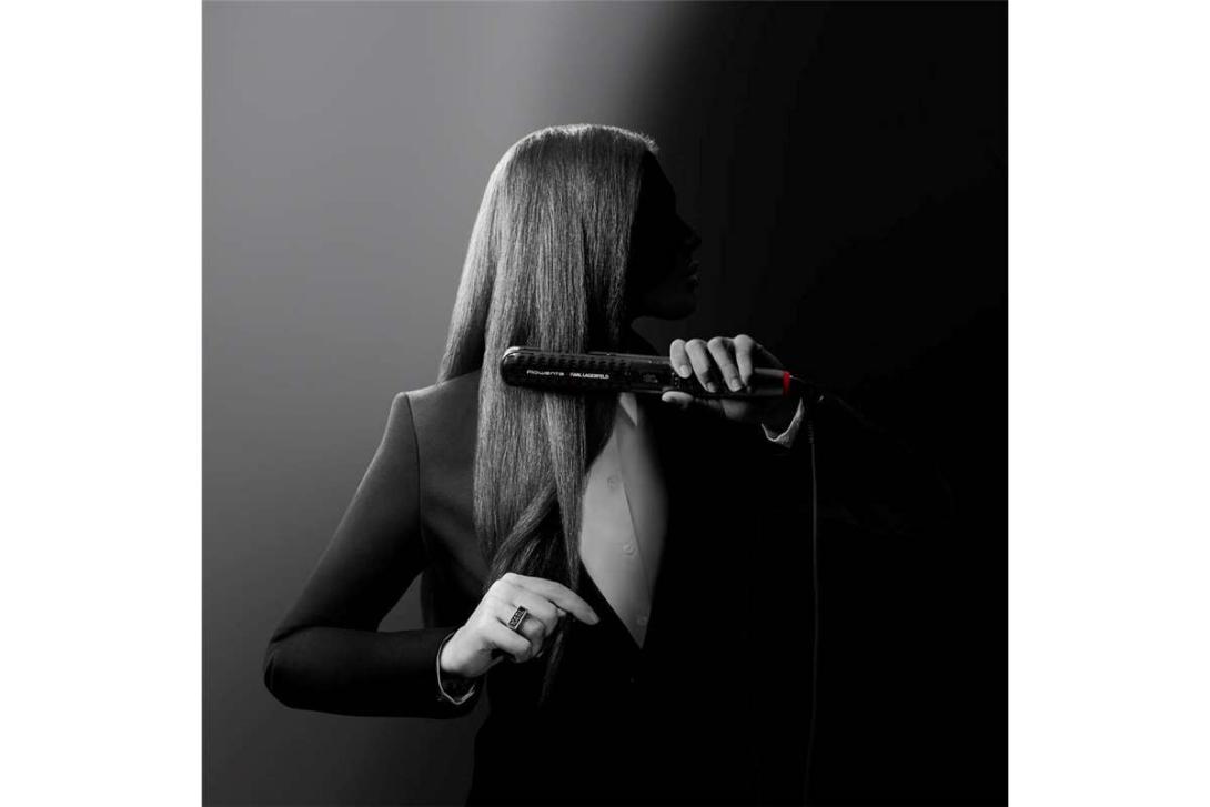 Žehlička na vlasy Rowenta x KARL LAGERFELD K/Pro Stylist má integrovaný hrebeň a povrch Keratin & Glow vyhladzuje a upravuje vlasy tak, aby vyzerali ako od kaderníka. Jedným ťahom dosiahnete elegantné a lesklé vlasy vďaka povrchu Keratin & Glow a ionizátoru. Používateľsky ústretový LCD displej a nastavenia teploty umožňujú jednoduché a profesionálne žehlenie pre ešte hodvábnejšie vlny.