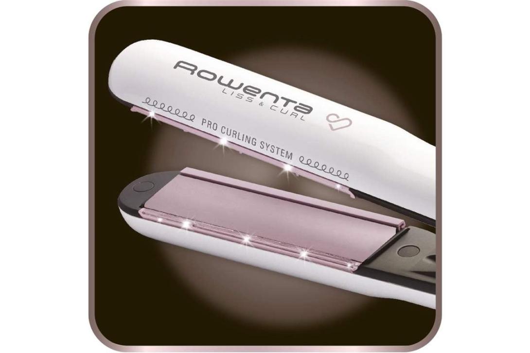 Prémiová žehlička na vlasy Rowenta Premium Care Liss & Curl SF7660F0 sa radí na špic v starostlivosti o vlasy. S unikátnou technológiou Straight Optimizer dokáže vlasy narovnať mimoriadne šetrne, pri optimálnej teplote a bez nadmerného naťahovania. Keratín a arganový olej, ktorými sú napustené žehliace dosky, vaše vlasy vynesú na vrchol dojmu zo zdravých vlasov.