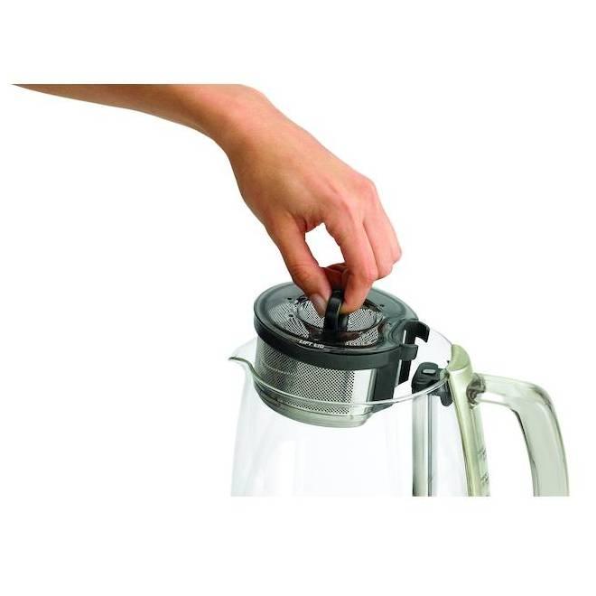 - Možnosť ohrevu vody (max. kapacita 1,5 l) a prípravy čaju priamo v kanvici (max. kapacita 1,2 l)