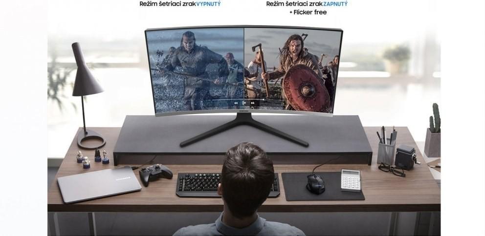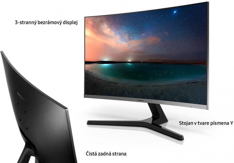 Monitor od Samsungu zaujme na prvý pohlaď svojou konštrukciou a mimoriadne štýlovým tvarom so zakriveným displejom. Zakrivenie monitora 1800R kopíruje zorné pole ľudského oka, čo vám zabezpečí minimálne rozptýlenie a lepšie priestorové videnie. Vďaka tomu môžete ľahšie vnímať všetky časti obrazu a naplno si užiť zážitok zo sledovania filmov, hrania hier či iného multimediálneho obsahu, ktorý sa postará o plnohodnotný pohlcujúci zážitok.