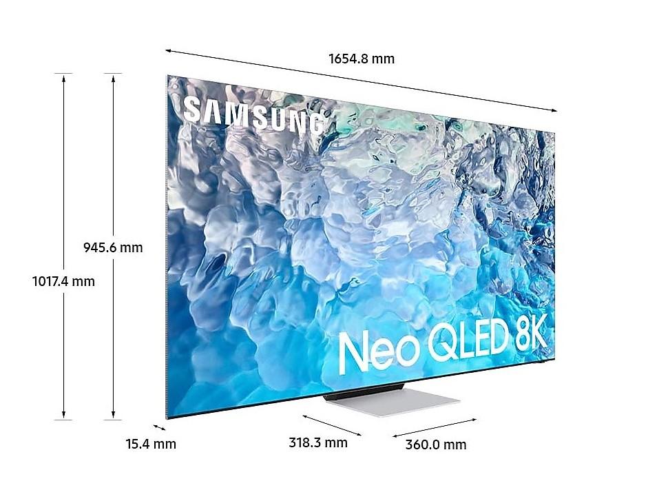 Neo QLED 8K, Uhlopriečka 75" (189 cm), Rozlíšenie 8K (7680 x 4320), Quantum Matrix Technology Pro, Mini LED podsvietenie (14bit HDR mapping), Umelá inteligencia - Neural Quantum Processor 8K + Multi-Intelligence 20 Neurónových sietí, Ultraširoké pozorovacie uhly, Antireflexná vrstva, 100% objem farieb, Quantum HDR 4000 (HDR10+ Adaptive/HLG), Adaptívny obraz, Shape adaptive light control, Vylepšenie hĺbky obrazu, Motion Xcelerator Turbo+, PQI 5000 (picture quality index), 2 tunery (DVB-T2/C/S2), kodek H.265, HbbTV 2.0.3, Smart kalibrácia obrazu Pro (SmartThings), Mód ochrany očí