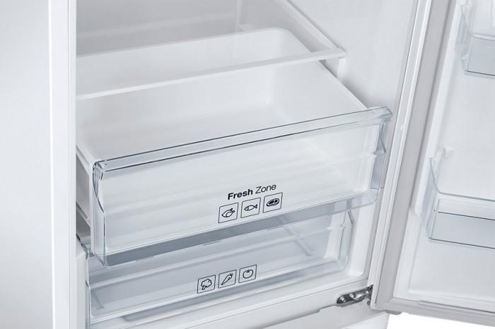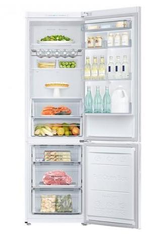 Kombinovaná chladnička s celkovým objemom 367 l, (chladnička / mraznička) 269/98 l, systém NoFrost zaisťuje rovnomerné chladenie bez vytvárania námrazy, a ľadu, All-around Cooling - dokonalé chladenie v každom rohu, invertorový kompresor s predĺženou 10 ročnou zárukou, vonkajší LED displej s ľadovo modrým podsvietením, funkcia rýchle mrazenie, zóna Fresh pre účinnú ochranu čerstvosti, držiak na víno, priehradka na vajcia, priehradka na mliečne výrobky, zásobník na fľaše vo dverách, zásuvka na ovocie a zeleninu, zapustená rukoväť dverí, zvuková signalizácia otvorených dverí, horné LED vnútorné osvetlenie, hlučnosť 38 dB, ročná spotreba elektrickej energie 259 kWh, farba snehovo biela, rozmery (Š x V x H mm) 595 x 2010 x 675