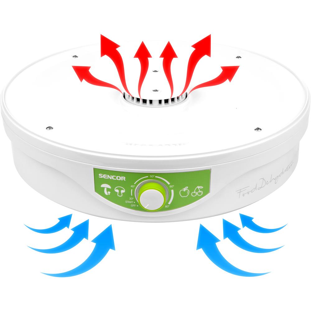 - Priehľadné veko a sitá umožňujú okamžitú vizuálnu kontrolu nad stavom sušenia