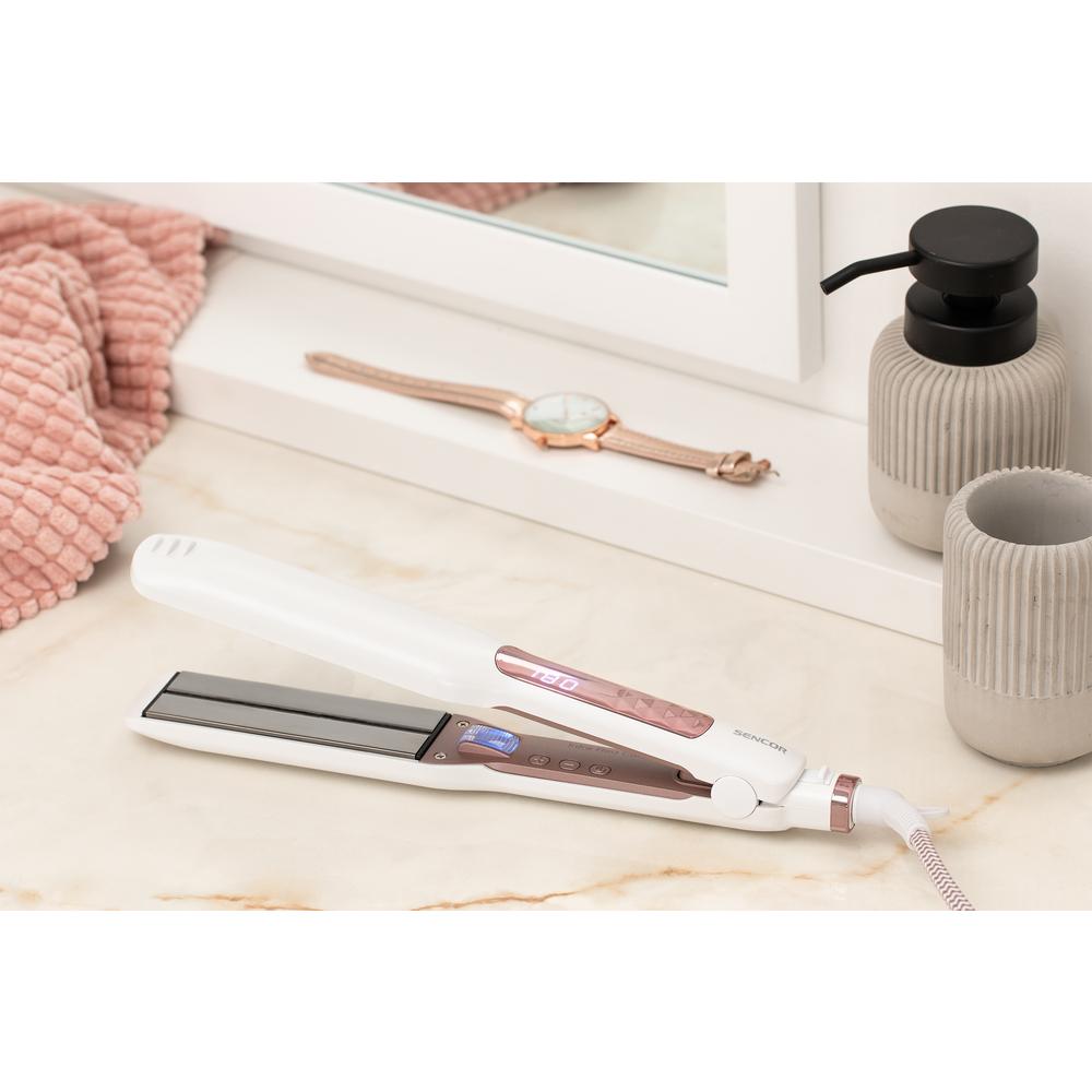 Žehlička na vlasy, 14 teplotných nastavení 100 – 230 °C, bezpečnostný zámok otvárania a zatvárania, displej s bielym podsvietením, jednoducho a ľahko rovná vlasy