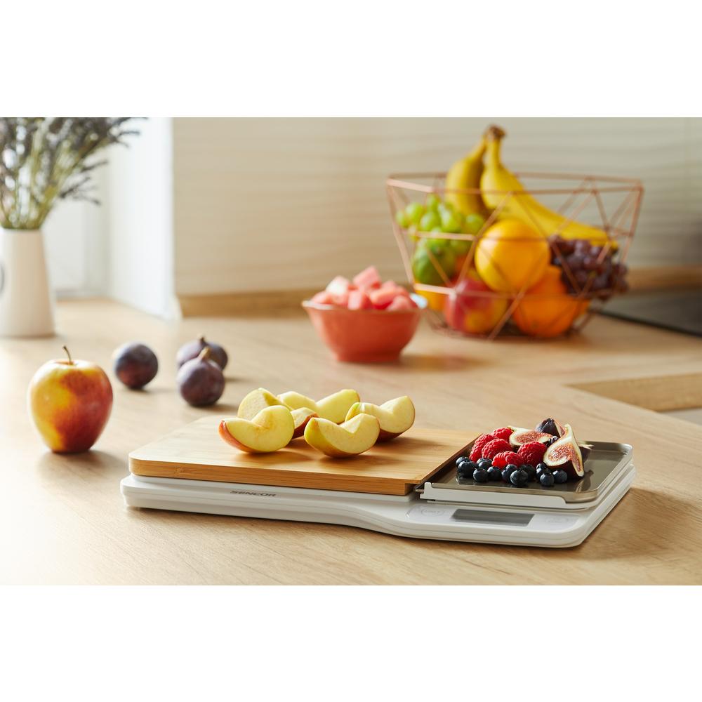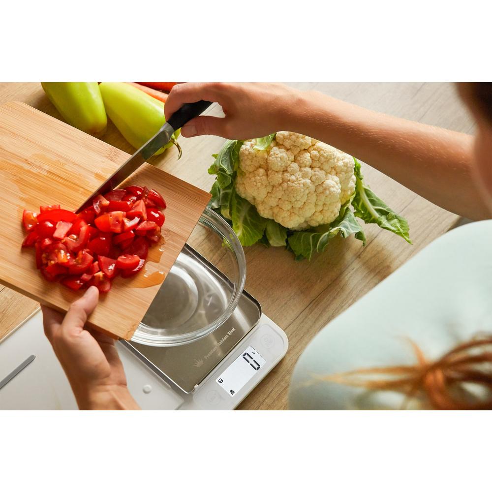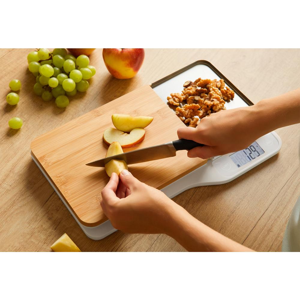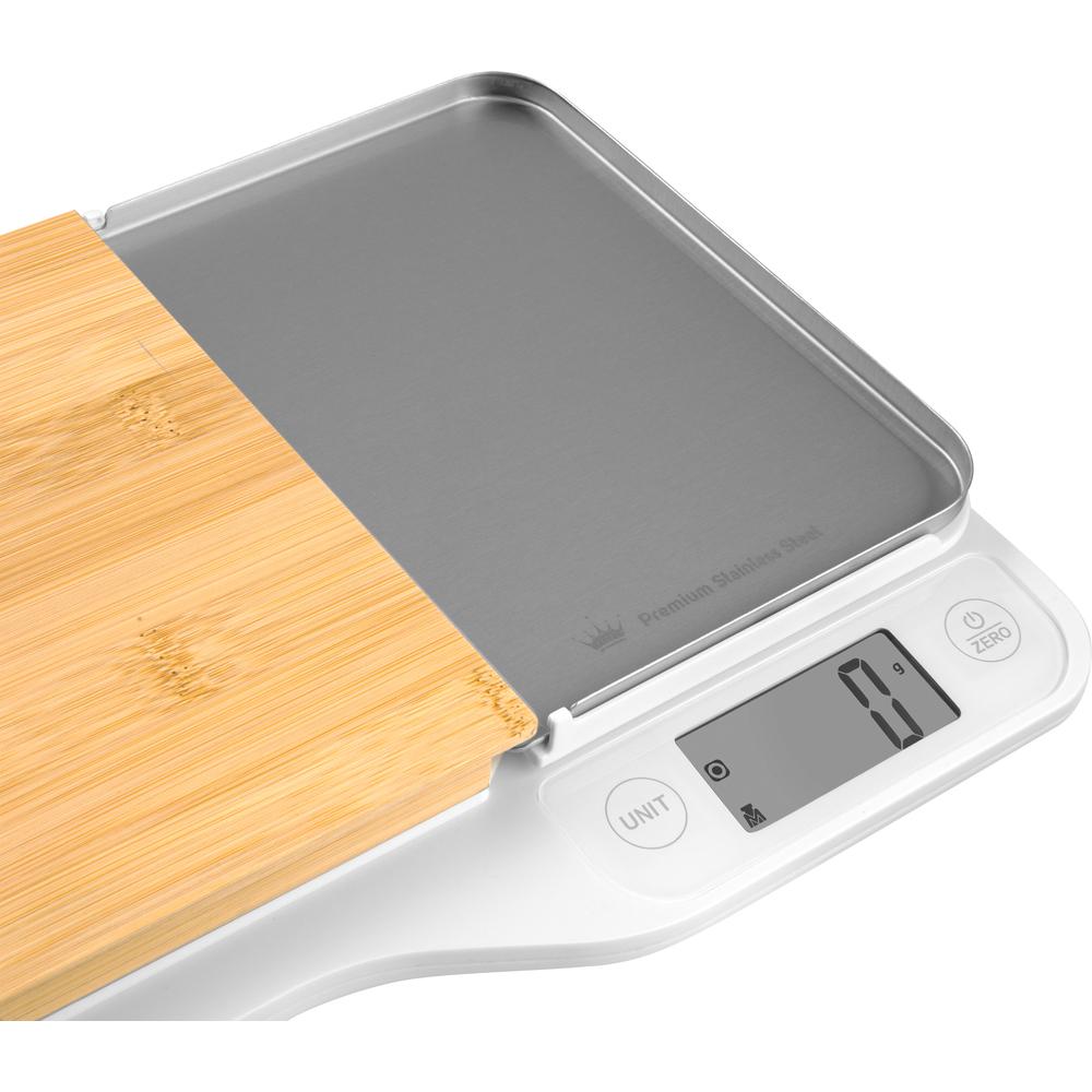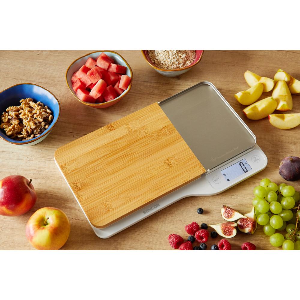 - Elektronická kuchynská váha s bambusovou doskou a odoberateľnou antikorovou miskou