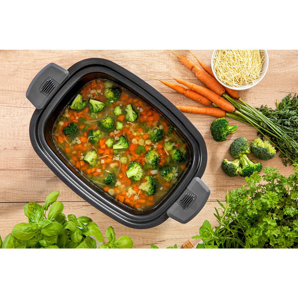 Pomalý hrniec, objem 6 l ľahko pohostí celú rodinu, technológia nepriľnavého povrchu bez PFOA, hliníková stena hrúbky 3 mm, vhodná na uskladnenie v chladničke, vhodná na umývanie v umývačke