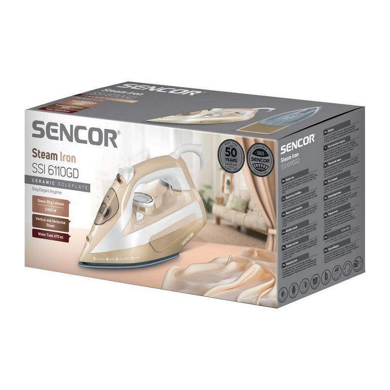 Žehlička, Príkon 2 600 W, Priesvitná nádržka na vodu s jednoduchým plnením (objem 470 ml), Plynulá regulácia teploty, Plynulý výstup pary: 35 g/min., Parný ráz: 160 g/min.