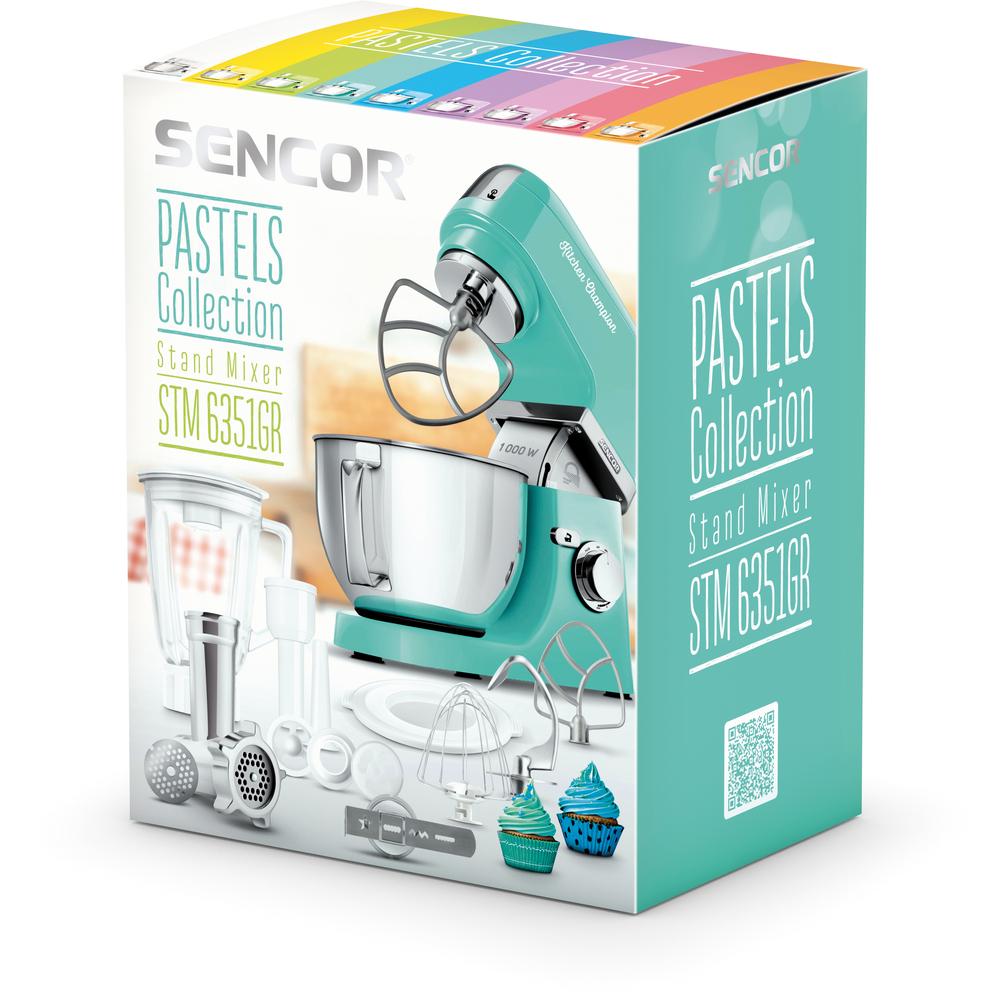 Sencor STM 6351 GR kuchynský robot, Technické parametre, Príkon 1 000 W, Objem nádoby 4,5 l, Materiál nádoby:Nerez, Hnetenie Áno