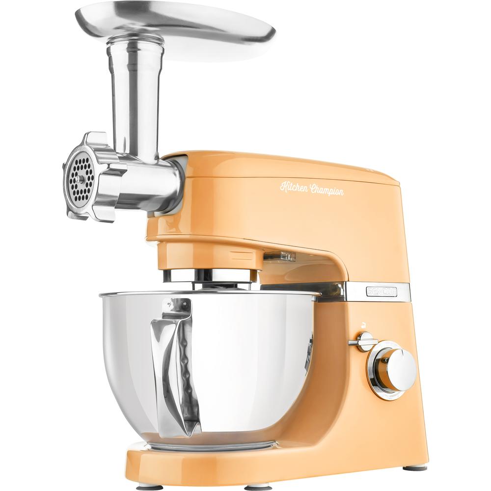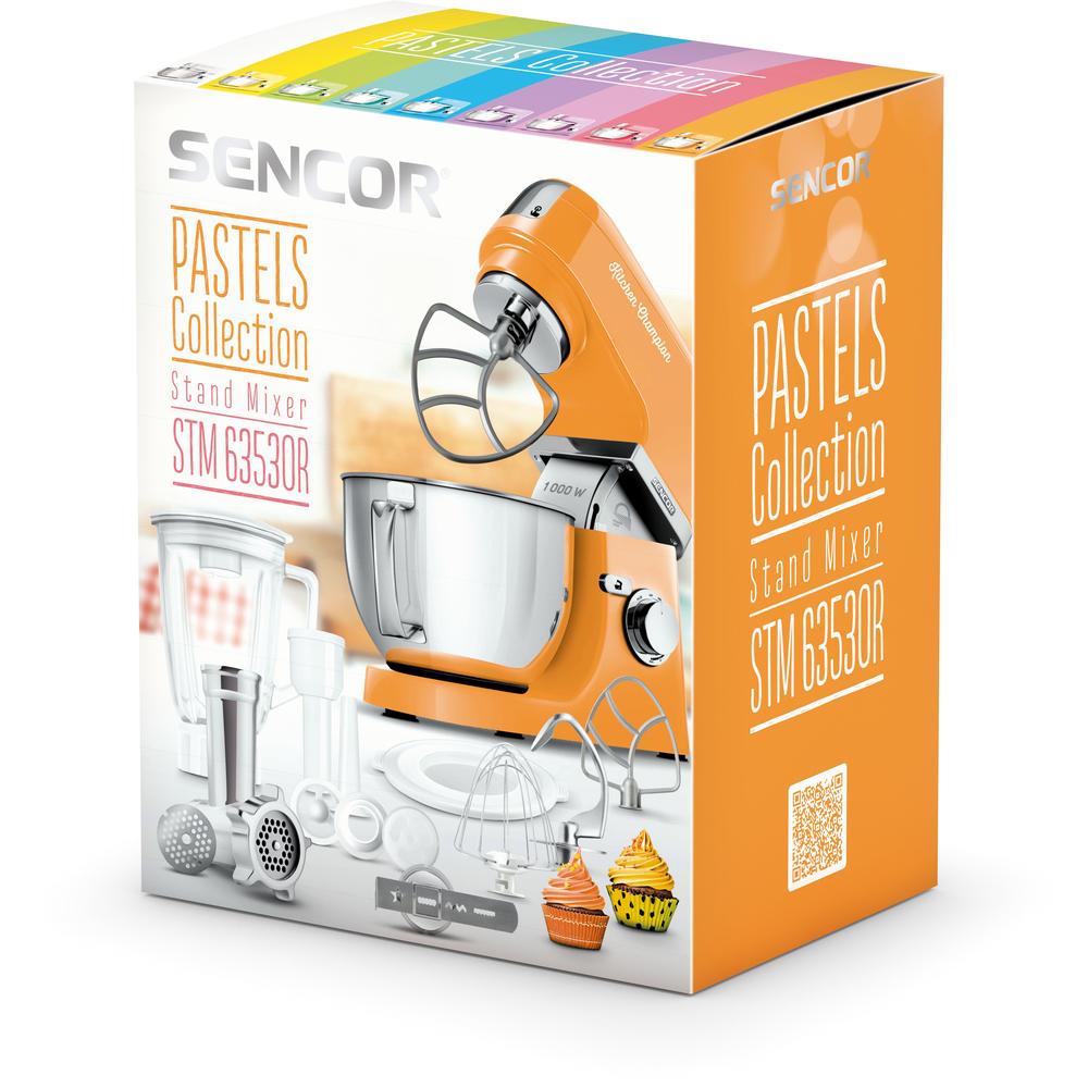Sencor STM 6353 OR kuchynský robot, extrémne výkonný 1 000W motor s 6-ročnou zárukou, pevné celokovové telo s kovovými prevodmi, 3-výstupová konštrukcia, 4,5 l nádoba , 1,5 l sklenený mixér, mlynček na mäso na hrubé a jemné mletie
