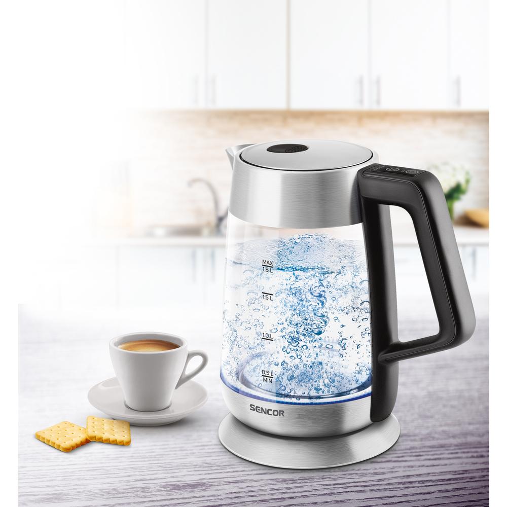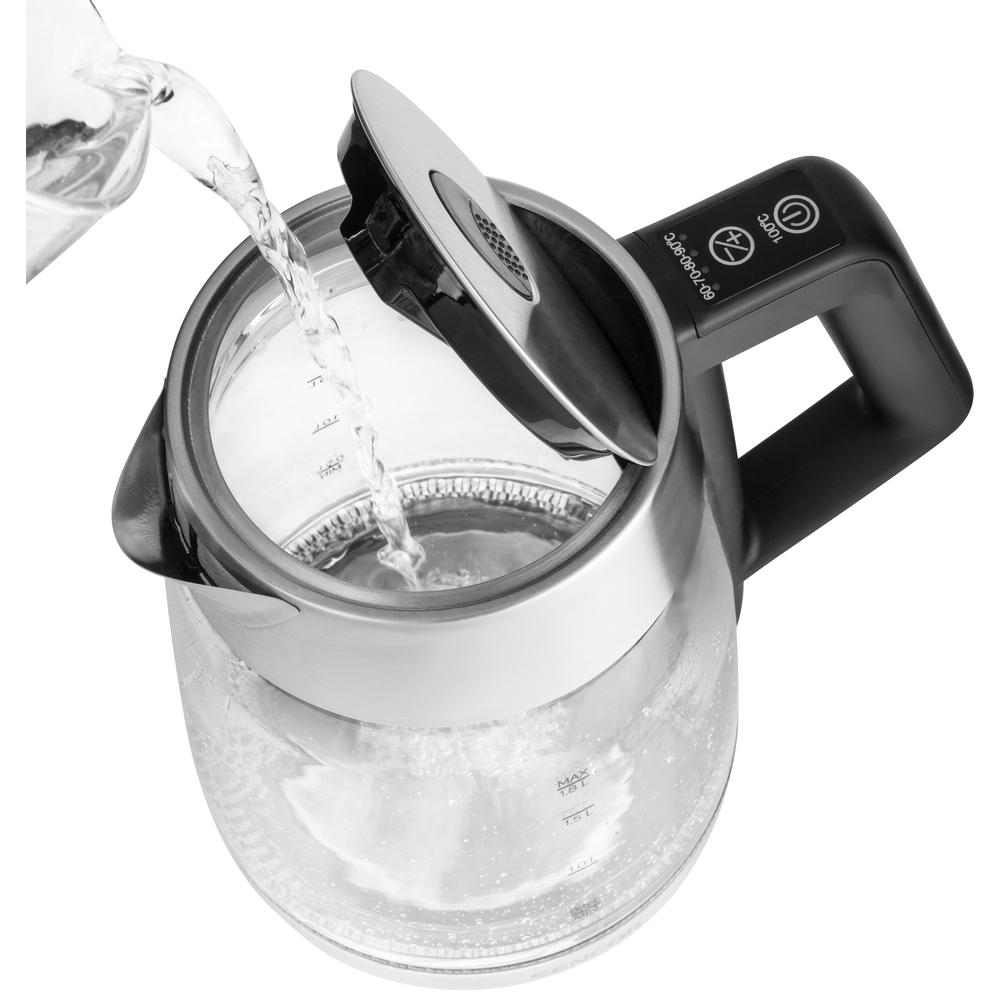 Rýchlovarná kanvica s reguláciou teploty, Objem 1,8 l, Príkon 2 200 W, Dotykový ovládací panel, Ohrev vody na zvolenú teplotu: 60-70-80-90-100 °C, Funkcia udržiavania teploty počas 120 min.