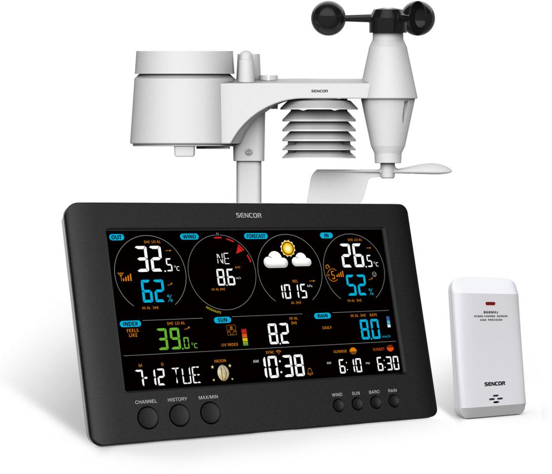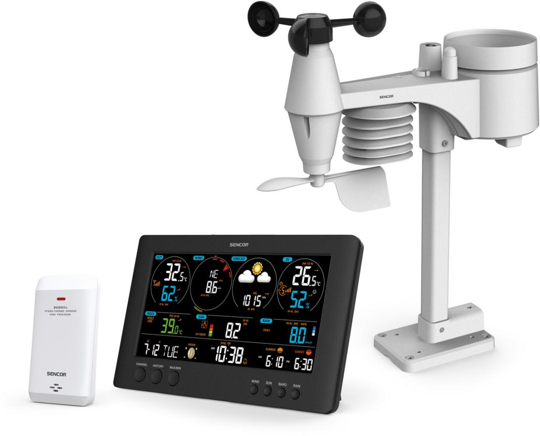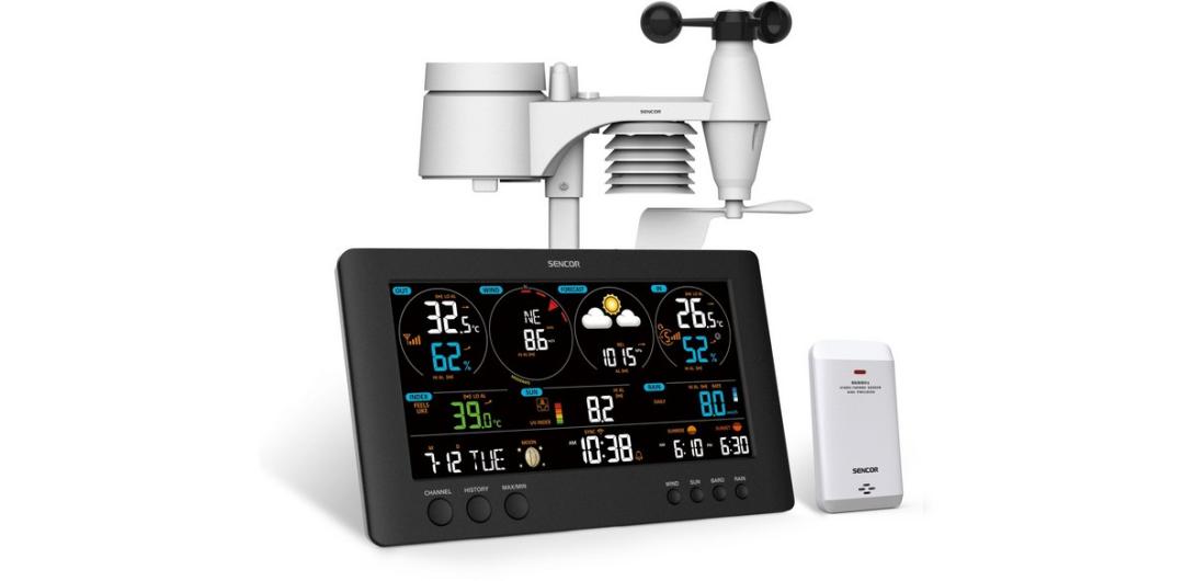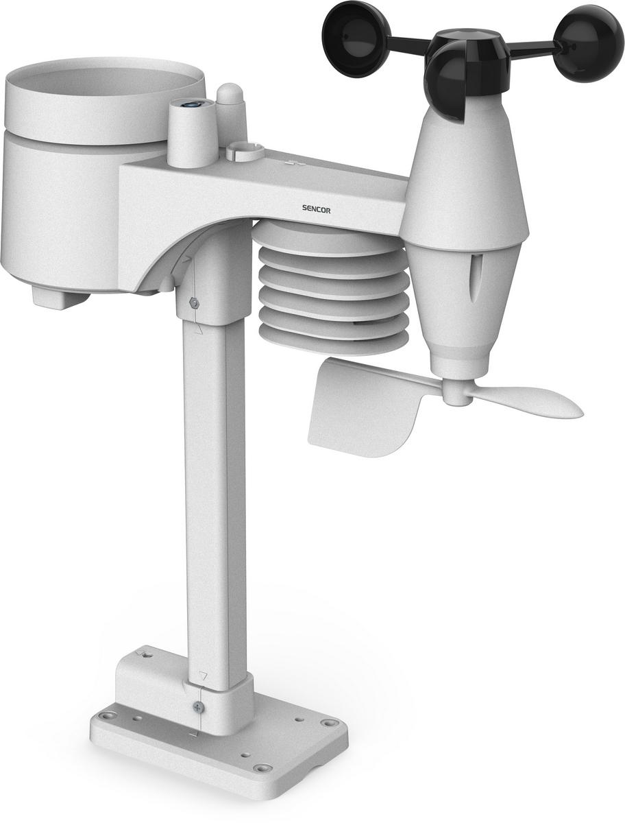 - Bezdrôtový snímač 7 v 1: Rýchlosť vetra, smer vetra, dažďové zrážky, teplota, vlhkosť, intenzita svetla a UV (súčasťou príslušenstva)
