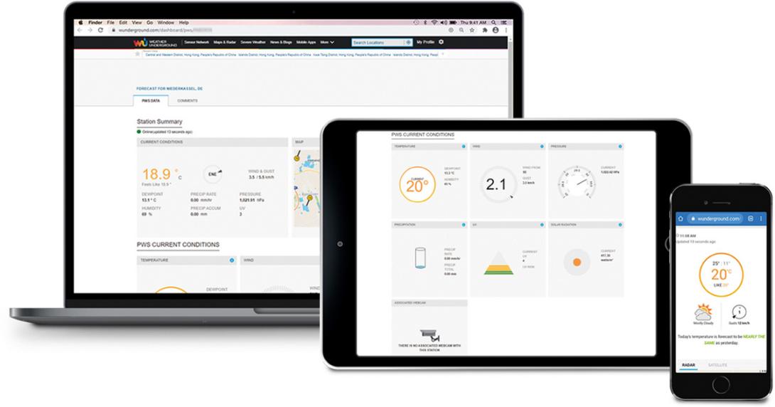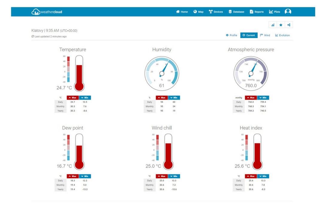 - Podpora globálnych verejných meteorologických platforiem „Weather Underground" a „Weathercloud"