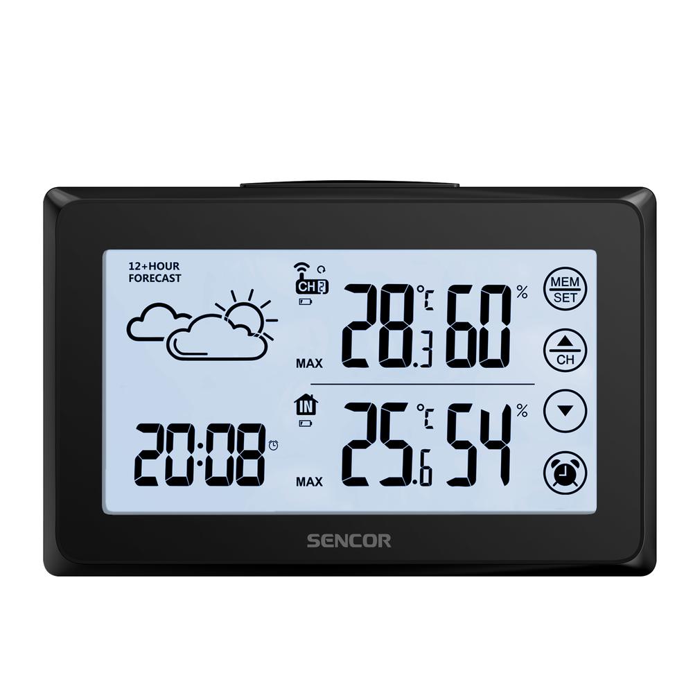 Meteorologická stanica, Rozsah merania vlhkosti 20 % až 95 % RV, 12-/24-hodinový formát, 3 úrovne jasu displeja: Vysoká/Nízka/Vypnutá, Frekvencia vysielania senzora: 433,92 MHz