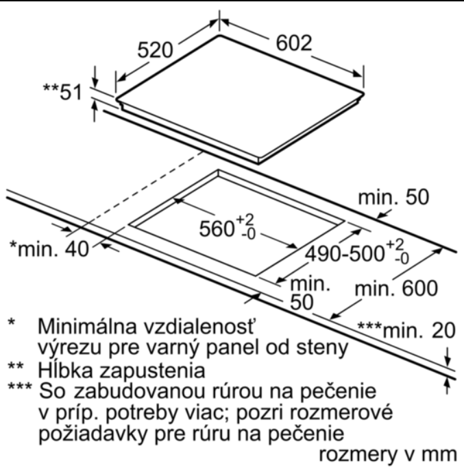 - minimálna hrúbka pracovnej dosky: 30 mm
