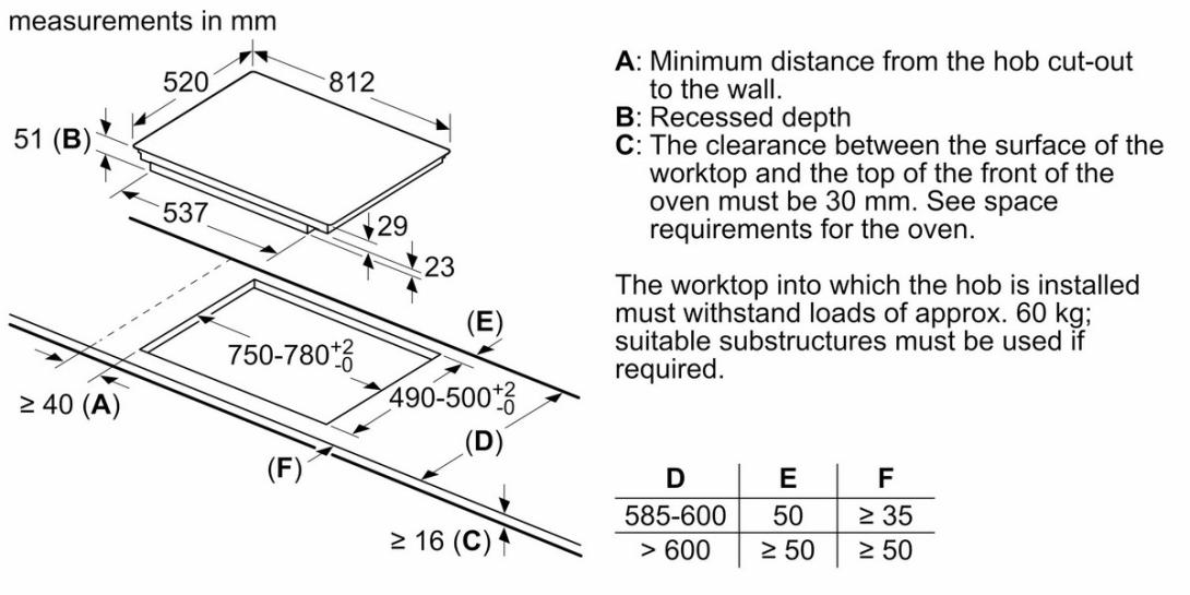 - rozmery pre vstavanie (V x Š x H): 51 x 750 x 490 - 500 mm