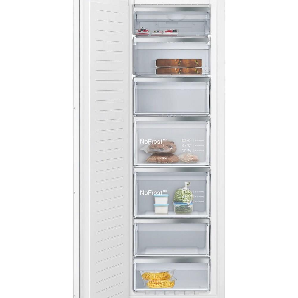 Už nemusíte odmrazovať mrazničku, aby vám mrazené potraviny vydržali čo najdlhšie a aby ste zachovali energetickú účinnosť spotrebiča. Technológia noFrost odsáva vlhkosť, v dôsledku čoho zostane vzduch suchý. Tým zabraňuje tvorbe námrazy na vnútorných stenách mrazničky či potravinách a ušetrí vám tak námahu pri odmrazovaní. Navyše šetrí energiu, pretože mrazuvzdorná mraznička funguje oveľa efektívnejšie.