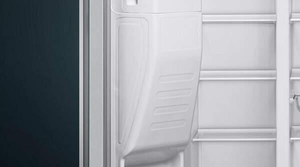 Americká chladnička disponuje mraziacim priestorom, ktorý sa nachádza na ľavej strane, ktorého čistý objem je 165 l. Mraziacia kapacita je 13 kg za 24 hod. a akumulačná doba pri poruche je 8 hod. Vo vnútri sa tiež nachádza 5 odkládacích plôch a 3 priehradky vo dverách. Súčasťou výbavy je tiež automatický výrobník ľadu, ktorý ocení pri horúcich letných dňoch.