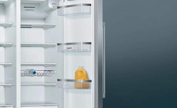 Americká chladnička Siemens KA93DAIEP v nerezovom prevedení s povrchom Easy Clean, svojím vzhľadom skvelo zapadne do akéhokoľvek interiéru kuchyne. Disponuje vertikálnym madlom a posyktne dostatok priestoru s celkovým úžitkovým objemom až 533 l. Vďaka tomu je ročná spotreba energie chladničky 343 kWh. Poteší tiež veľmi tichou prevádzkou, ktorá dosahuje len 42 dB.