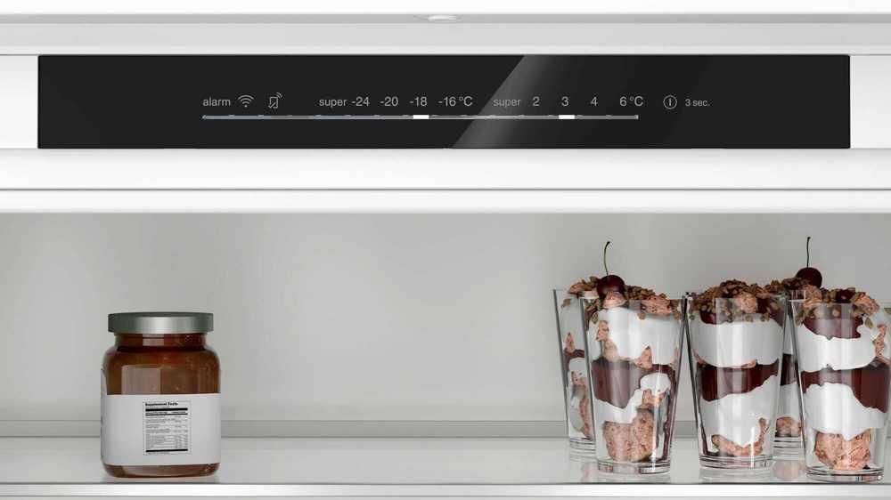 - akustický varovný signál pre chladničku aj mrazničku, akustický varovný signál pri otvorených dverách chladničky, optický a akustický varovný signál pri ponechaní otvorených dverí