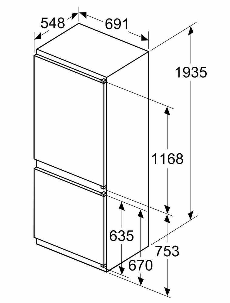 - rozmery spotrebiča (V x Š x H): 193.5 cm x 69.1 cm x 54.8 cm