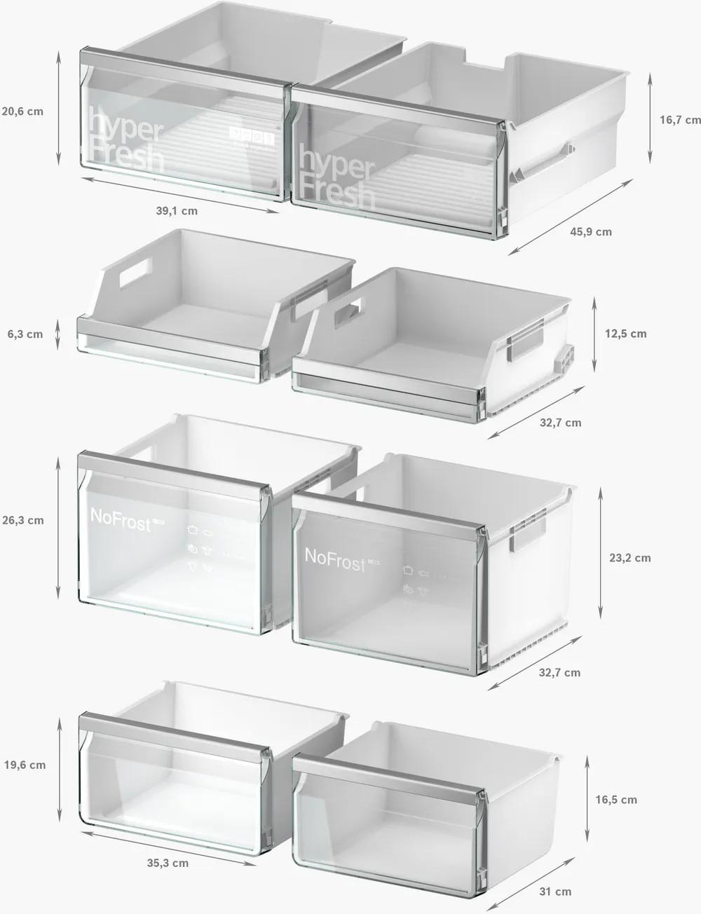 Chladnička side-by-side je vybavená priehradkami hyperFresh, ktoré sa postarajú o dlhšiu trvanlivosť a zachovanie chutí pomocou jednoduchého nastavenia. Majú samostatný prívod chladného vzduchu. Ich tvar aj funkcie sú navrhnuté tak, aby poskytovali vhodné prostredie na ovocie, zeleninu, mäso alebo ryby. Potraviny zostanú čerstvé až 3× dlhšie, zachovajú si svoju kvalitu a dobrú chuť.