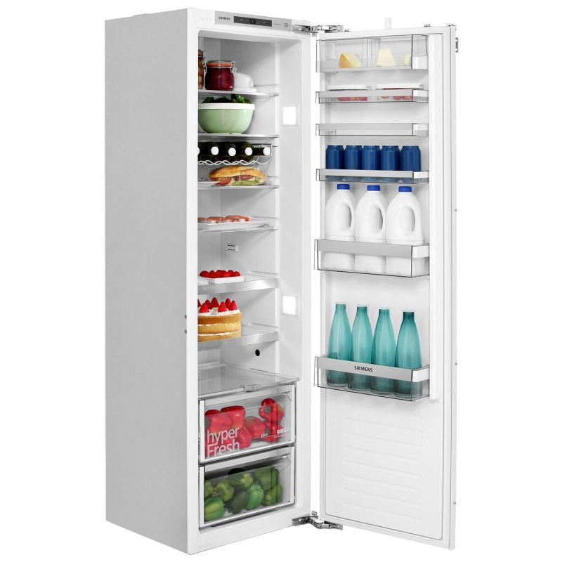 Vstavaná chladnička Siemens ukazuje, ako by mal vyzerať dobrý kuchynský spotrebič. Je výkonná, úsporná a elegantná. Hneď po otvorení dverí môžeme vidieť, že pri výrobe bolo použité len tých najjemnejších materiálov – ušľachtilá nerezová oceľ, tvrdené bezpečnostné sklo, chrómové lišty a kvalitné plastové doplnky dominujú celému interiéru.