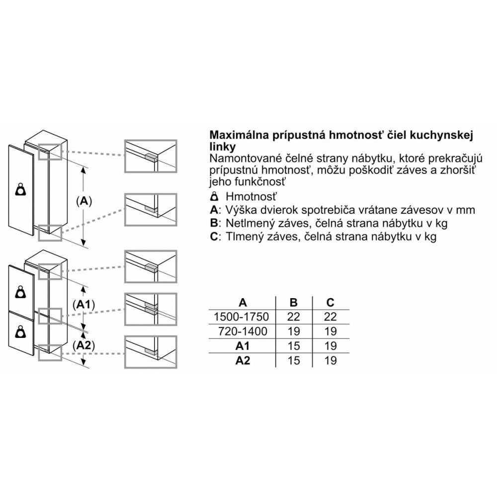Vstavaná kombinovaná chladnička, Čistý objem chladiacej časti: 184 l, Čistý objem mraziacej časti: 76 l, Klimatická trieda: SN-ST, LED osvetlenie v chladiacej časti